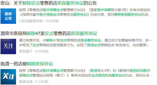 8月6日,内蒙古乌海市医保局发布消息:共解除医保协议定点医疗机构99家、定点零售药店100家。