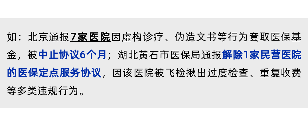 今年6月,国家医保局发布《关于进一步加强医疗保障定点医疗机构管理的通知》,再次强化对“医保定点”的监管力度。